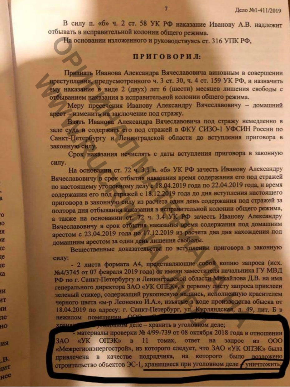 Для устранения Шамана А.В. и была реализована схема провокации с участием Иванова А.В., ранее вовлечённого в комбинацию Чеснокова, Штыкова и отдела «М» по уничтожению материалов проверки против компании ЗАО УК «ОПЭК», которое произошло в конце 2019 года (приложение №1).